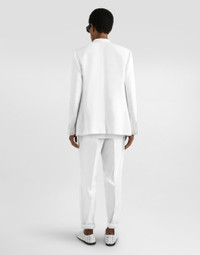 This double-breasted jacket in white linen is an elegant and versatile garment, perfect for any formal or casual chic occasion. Its linen construction ensures lightness and comfort, while the double-breasted design adds a touch of sophistication. Double-breasted linen jacket: • White • Portofino shape • Notch lapels • Double-breasted with four buttons • Unlined • The model is 185 cm tall and wears a size 48 IT • Made in Italy External Composition: 100% Linen Internal Composition: 76% Acetate, 24% Silk