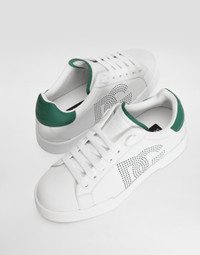Iconic and timeless, these iconic Portofino sneakers come with new details. Featuring the perforated DG logo, they come crafted in calfskin. Calfskin Portofino sneakers: • White • Contrasting calfskin heel cup with DG logo • Flat laces • Calfskin tongue with debossed logo • Calfskin footbed with branded label • Rubber bottom assembly and branded sole • Item comes with a branded dust bag • Made in Italy External composition: 100% Calfskin Internal composition: 58% Lambskin 24% Polyester 10% Goatskin 8% Natural Rubber