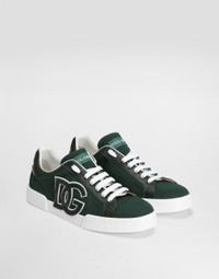 Canvas and Calfskin sneakers: • Multi-colored • Portofino Light shape • EVA outsole • Felt Insole • Polyurethane fussbett insole wrapped in leather, customized with fire stamp • DG Patch applied • Item equipped with a black cotton bag and a box made of recycled paper cellulose fiber • Sole height 15 mm • Made in Italy External Composition: 82% Cotton 18% Calfskin Internal Composition: 63% Lambskin, 16% Cotton, 16% Polyester, 5% Goatskin