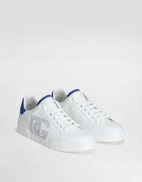 Featuring an understated shape, these Strobel Portofino Light sneakers come in 100% calfskin. Complete with the perforated DG logo. Calfskin Strobel Portofino Light sneakers: • White and Blue • Calfskin upper • Flat laces • Calfskin footbed with branded label • Branded rubber bottom assembly • Item comes with a branded dust bag • Made in Italy External composition: 100% Calfskin Internal composition: 75% Lambskin 18% Cotton 7% Goatskin