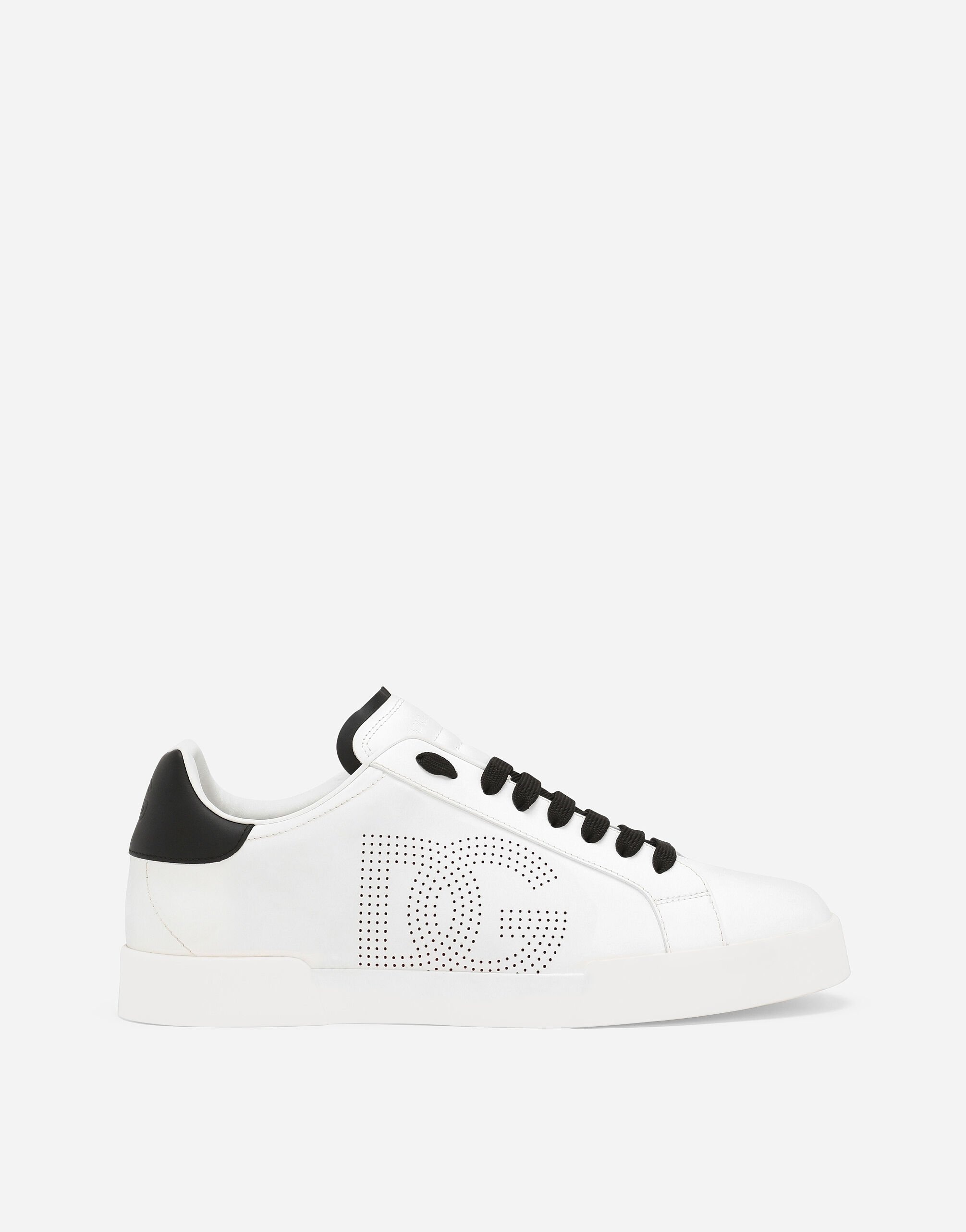 Iconic and timeless, these iconic Portofino sneakers come with new details. Featuring the perforated DG logo, they come crafted in calfskin. Calfskin Portofino sneakers: • White • Contrasting calfskin heel cup with DG logo • Flat laces • Calfskin tongue with debossed logo • Calfskin footbed with branded label • Rubber bottom assembly and branded sole • Item comes with a branded dust bag • Made in Italy External composition: 100% Calfskin Internal composition: 58% Lambskin 24% Polyester 10% Goatskin 8% Natural Rubber