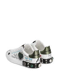 Portofino Graffiti sneakers Highlights - White - Decorative embellishments - Front lace-up fastening - Round toe - Flat rubber sole Made in Italy Composition Lining: Lambskin 70%, Goat Skin 20%, Rubber 5%, Polyester 5% Outer: CALFSKIN 70%, Silk 10%, Viscose 5%, Cotton 5%, Polyester 5%, Polyurethane 5% Sole: Thermoplastic Polyurethane (TPU) 100%