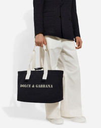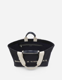 Spacious and versatile, this new holdall is made from printed drill fabric and features two top handles. Printed jute tote bag with canvas details: • Blue • Top fastening with zipper and slider with logo • Canvas top handles with calfskin details and canvas shoulder straps • Fabric lining, a zipped pocket and two flat pockets • Item comes with a branded dust bag • Measurements: H31 x W43 x D20 cm • Made in Italy External composition: 90% Cotton 10% Calfskin Internal composition: 80% Cotton 10% Calfskin 10% Acrylic