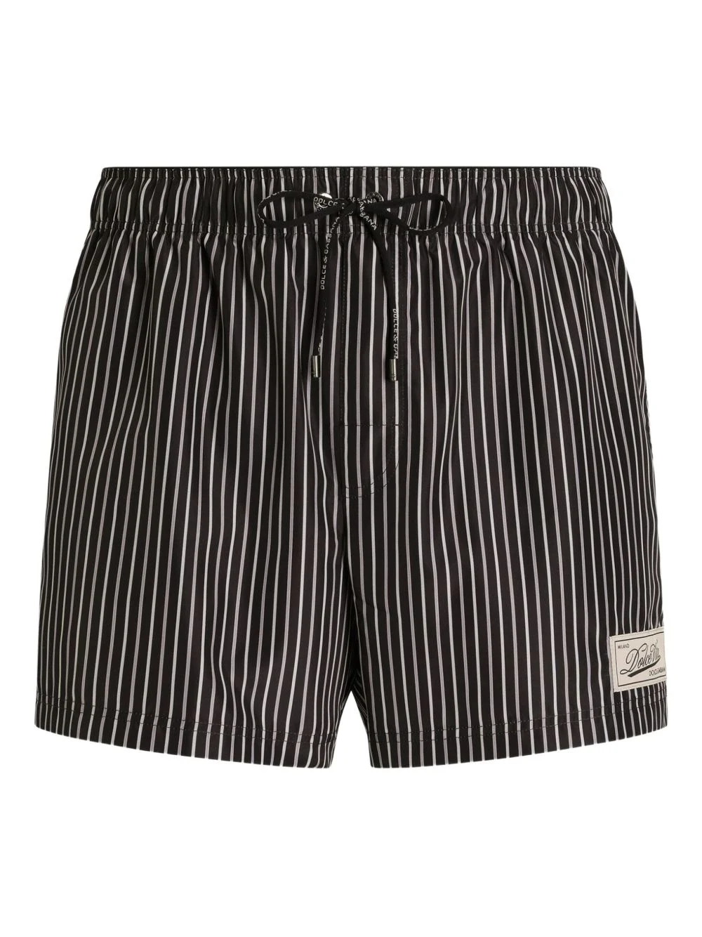 striped-pattern swim shorts Highlights - Black and beige - Striped-pattern - Side pockets - Drawstring-fastening - Inner briefs - Elasticated-waistband - Patch-detail - Be mindful to try on swimwear over your own garments. Made in Italy Composition Outer: Polyester 100% Lining: Polyamide 88%, Elastane 12% Washing instructions Read Manufacturer Guidelines