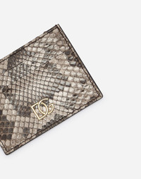 Elegant and understated, this python leather card holder features the crossover DG logo. The small size makes it perfect for slipping comfortably into your pocket and it is ideal for holding your credit cards and business cards: • Gold-plated crossover DG logo • Four card slots and one top compartment • Measurements: 10 x 7.5 x 0.5 cm - 3.9 x 3 x 0.2 inches • Made in Italy Care And Details External composition: 100% Python Molurus Internal composition: 100% Viscose