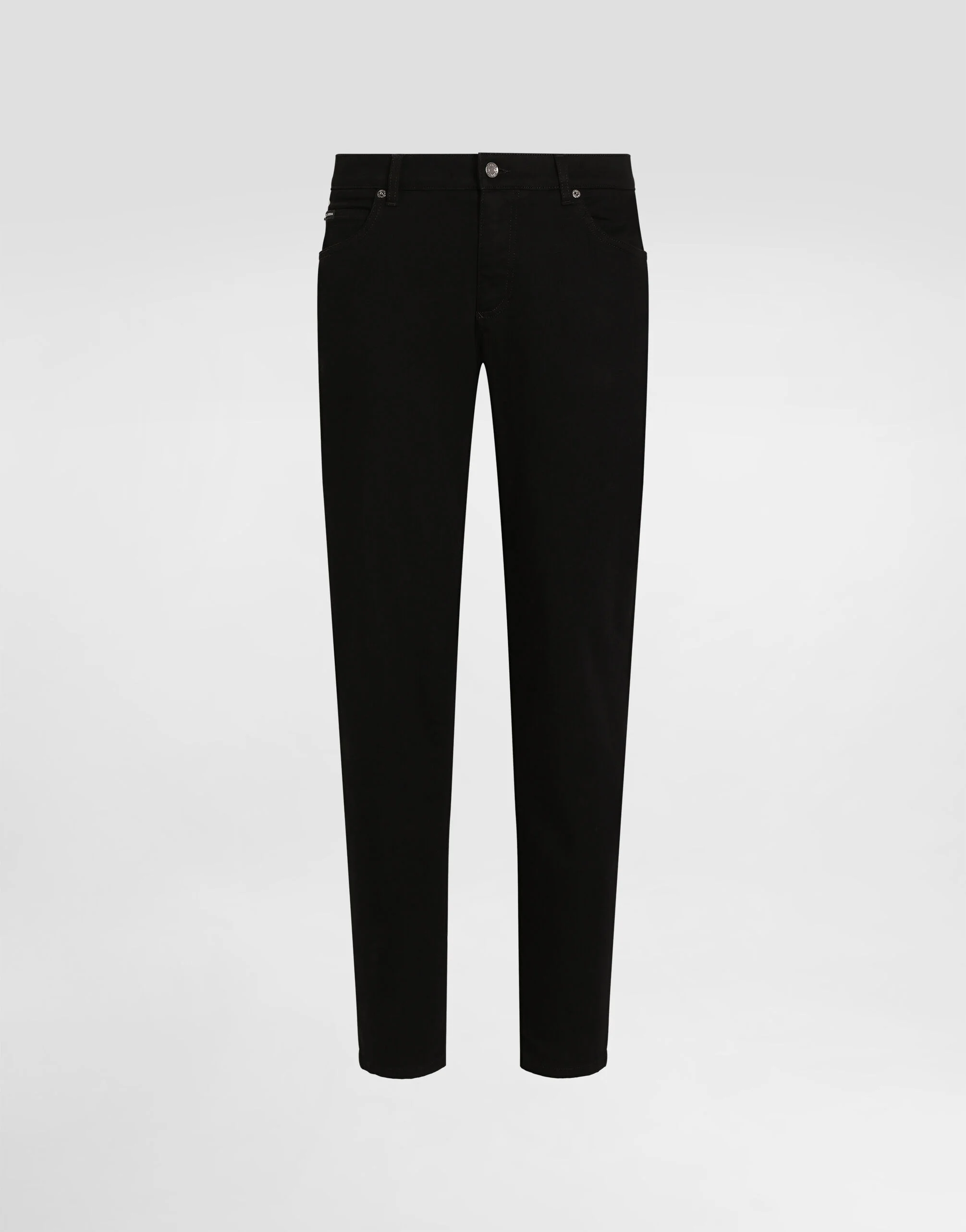 Five-pocket regular jeans in stretch denim: •Black •Regular fit •Fly-covered zipper and button fastening •Metal Dolce&Gabbana logo plate on the back •The item measures 105 cm on the outer leg and the hem is 17 cm wide on a size IT 48 •The model is 185 cm tall and wears a size IT 48 •Made in Italy Care And Details External composition: 98% Cotton 2% Spandex