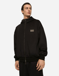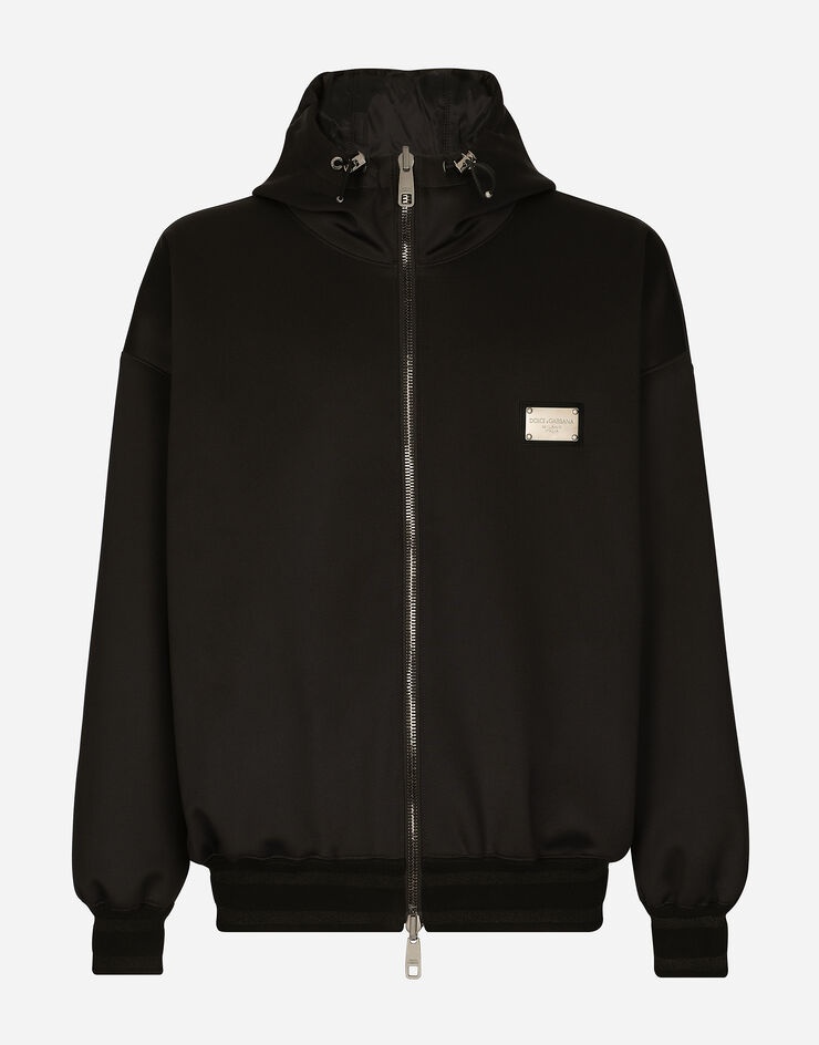 Reversible technical jersey and nylon jacket featuring the DG Monogram design with the metal Dolce&Gabbana logo tag: • Oversize fit • Drawstring hood • Front zipper fastening • Inner welt pockets with zipper • Stretch knit hem and cuffs • Lined • The piece measures 73 cm from the rear collar seam on a size M • The model is 185 cm tall and wears a size M • Made in Italy Care And Details External composition: 95% Polyester 5% Spandex Internal composition: 100% Polyamide
