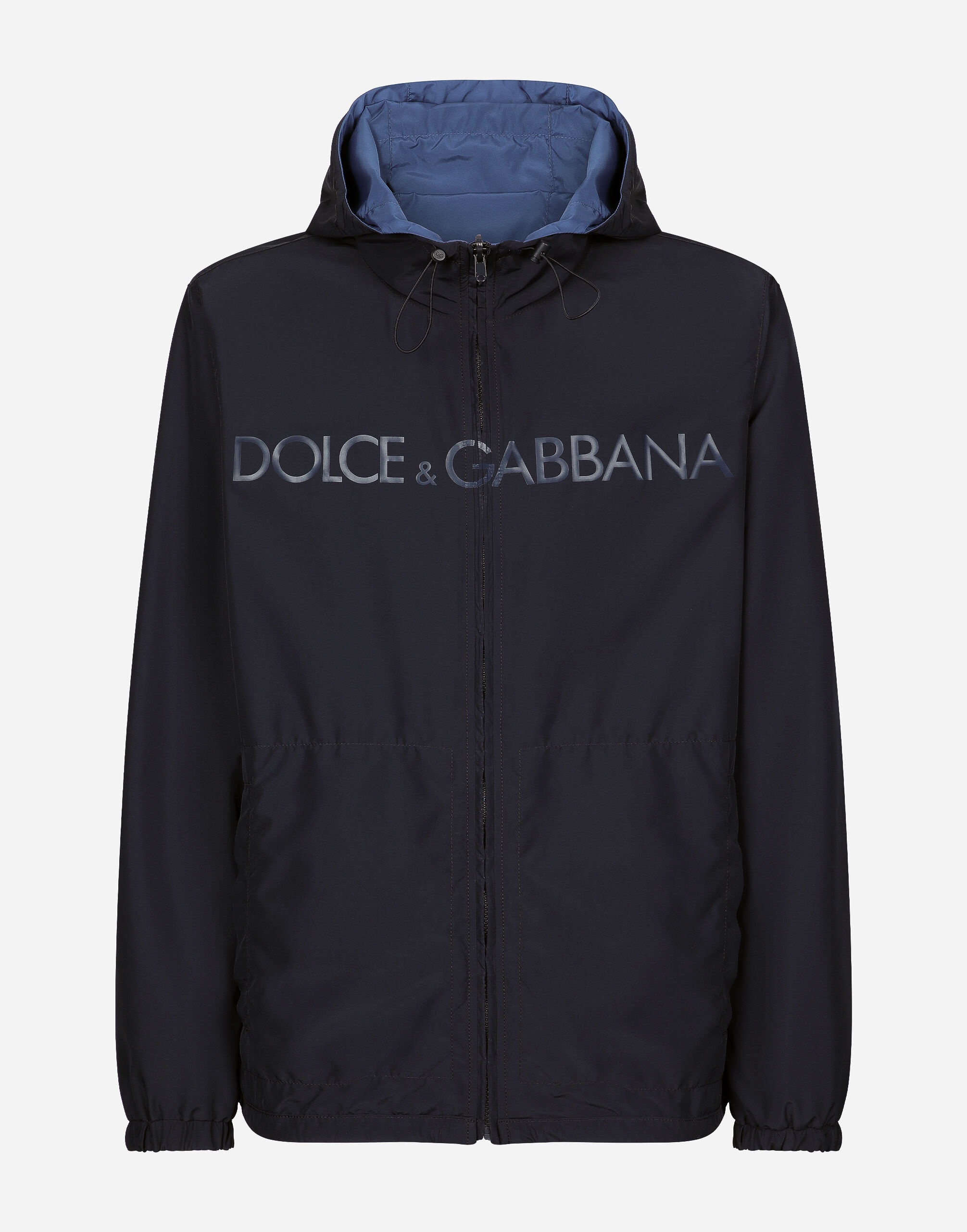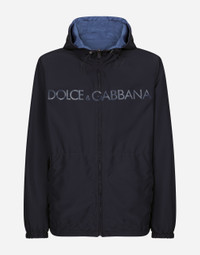 The Marina line has us dreaming of the Mediterranean sea and its myriad shades of blue, while also bringing weathered sailors to mind, yet with a contemporary edge. Aesthetic influences and clear lines, stormy sea Blue jackets, multi-pocket pieces, waterproof garments, anchor prints and materials that invite us to discover the “lighthouse keeper”. Fascinating, enigmatic and at times lonely, it tells the tale of a new masculine sensuality built with small yet precise proportions and attention to stylish detail. Reversible technical fabric jacket with Dolce&Gabbana logo: • Blue • Drawstring hood • Zipper fastening • Concealed press-stud buttons on pockets • Adjustable drawstring hem • The piece measures 73 cm from the rear collar seam on a size IT 48 • Made in Italy External composition: 100% Polyester Internal composition: 100% Polyester