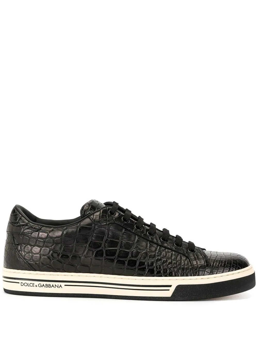Rome leather sneakers Highlights - A contemporary take on the low-top sneaker, these black crocodile leather sneakers from dolce & gabbana are truly unique. you deserve an upgrade. featuring a lace-up front fastening, a round toe, and a flat rubber sole with logo. please note that this item cannot be shipped outside the u.s.. please note that this item cannot be shipped outside the u.s.. Made in Italy Composition Lining: Calf Leather 95%, Goat Skin 5% Outer: Crocodile Leather 100% Sole: Rubber 100% SIZE & FIT Measurement Sole height 1.18 in(3 cm)