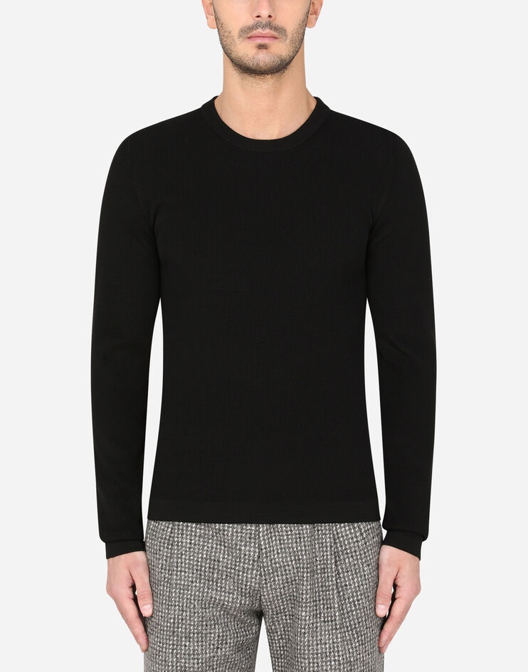 In the Dolce&Gabbana collection, our Sicilian roots and tailoring expertise mix with layering and new volume to create a sophisticated and contemporary update on our signature aesthetic. Round-neck fine-rib wool sweater: • Fitted • 14-gauge fine-rib knit • The piece measures 69 cm - 27.2 inches from the rear collar seam on a size IT 48 • The model is 185 cm - 72.8 inches tall and wears a size IT 48 • Made in Italy Care And Details External composition: 100% Virgin Wool