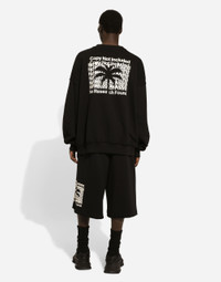 The Banano collection immerses us in the beauty of nature and, thanks to its vibrant colors, transports us to tropical cities, distinguished by Art Deco villas and lush gardens. Vintage 1940s graphics, fabrics and special volumes for the stylish man who loves to tell his story through the craftsmanship, beauty and originality of his chosen garments. This is how the designers recount a fantastic place, the tropics, a magical locale where you can dream, where nature spoils us with its unique colors. Cotton jersey round-neck sweatshirt with Banana tree print: • Black • Oversize fit • DG logo on the front and banana tree print on the back • Stretch knit hem, neck and cuffs • The piece measures 69.5 cm from the rear collar seam on a size M • Made in Italy External composition: 100% Cotton
