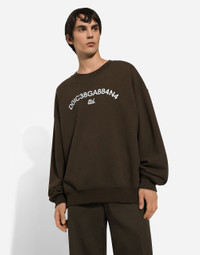The SS24 “Stile” Collection recounts and clearly presents a strong concept: the unique and unmistakable style of Dolce&Gabbana. A word that is more than a statement. It is a concept! The designers work with surfaces, textures, layers and color nuances, as well as the sheen and fineness of the materials themselves, creating a “Stylish” collection. We’re going back to our roots with the desire to reaffirm the “Stile” - style -, flair and iconic DNA of the brand. Cotton jersey round-neck sweatshirt with Dolce&Gabbana logo print: • Brown • Oversize fit • Stretch knit hem and cuffs • The piece measures 69.5 cm from the rear collar seam on a size M • Made in Italy External composition: 100% Cotton