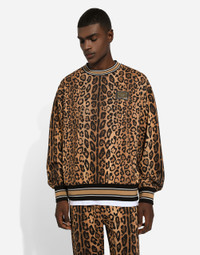 The new Crespo Leo collection is an ode to the leopard print that made Dolce & Gabbana’s history and which went on, over time, to become an emblem of boldness and sheer eccentricity. Every season it is reinterpreted and reworked in new bold and surprising takes, in an unmistakable blend of creativity, tradition and Mediterranean flair that merges memories and cultural references, thereby creating iconic, timeless pieces that stand apart from any trend, infused with great emblematic value. Cotton jersey round-neck sweatshirt with leopard-print Crespo: • Multi-colored • Regular fit • Contrasting stretch rib neck, hem and cuffs • Dolce&Gabbana logo tag • The piece measures 69 cm from the rear collar seam on a size IT 48 • Made in Italy External composition: 100% Cotton