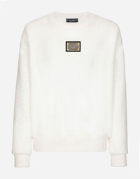Cotton terrycloth round-neck sweatshirt with metal tag featuring the Dolce&Gabbana logo: • Oversize fit • Long sleeves • Stretch knit hem, neck and cuffs • The piece measures 69.5 cm from the rear collar seam on a size M • The model is 185 cm tall and wears a size M • Made in Italy Care And Details External composition: 100% Cotton