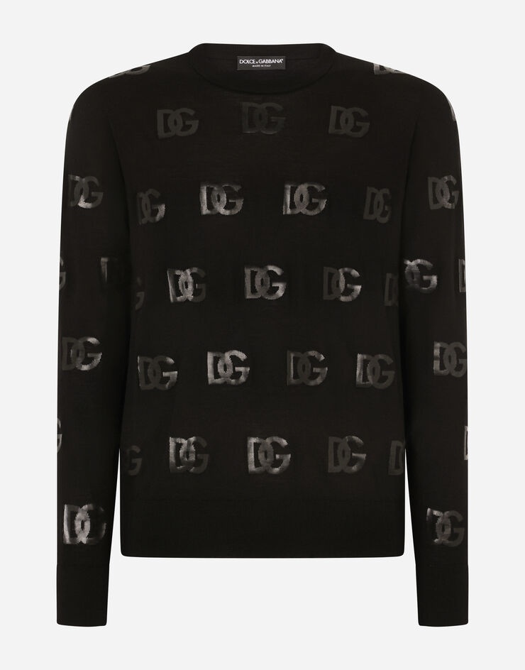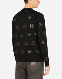 The Hot Animalier collection is built around our iconic Leopard print, which has been updated in red and black hues. New shapes, oversize volumes, red aluminum plating and screen printing create looks for multi-faceted men with a whole lot of personality who know their own minds. Round-neck virgin wool and technical jacquard sweater with DG logo: • Regular fit • 18-gauge plain knit • The piece measures 67 cm - 26.4 inches from the rear collar seam on a size IT 48 • The model is 185 cm - 72.8 inches tall and wears a size IT 48 • Made in Italy Care And Details External composition: 60% Virgin Wool 30% Polyurethane 10% Polyester