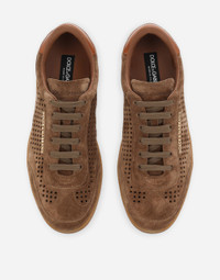 Understated and timeless, these Saint Tropez sneakers come in suede with calfskin details and the metal Dolce&Gabbana logo. Suede Saint Tropez sneakers: • Brown • Metal lettering logo • Contrasting calfskin heel cup • Flat laces • Tongue with embossed logo • Calfskin footbed with branded label • Branded rubber sole and bottom assembly • Item comes with a branded dust bag • Made in Italy External composition: 100% Calfskin Internal composition: 90% Lambskin 10% Goatskin