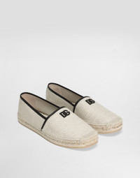 An elegant espadrille that combines classic summer style with modern and sophisticated nappa details. Espadrille in salt & pepper fabric and nappa details: • White • TPU outsole • Rope insole • Leather teardrop heel insole with label • Thread embroidery detail • Item equipped with a black cotton bag and black embossed box • Sole height 25 mm • Made in Italy External Composition: 50% Cotton, 30% Linen, 20% Calfskin
