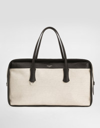 The handbag from the Atene line is a perfect combination of classic style and modernity, made with salt&pepper processing and printed Calfskin details. Salt&pepper Calfskin Atene handbag: • White • Leather handles • Antique palladium galvanic zip closure • External and internal customization with stamp and film • Flat pocket inside • Item equipped with a logo bag and a pre-assembled box • Measurements: H26 x W47 x D24 cm • Made in Italy External Composition: 58% Cotton, 20% Calf, 16% Linen, 6% Polyester Internal Composition: 58% Cotton, 20% Calfskin, 16% Linen, 6% Polyester
