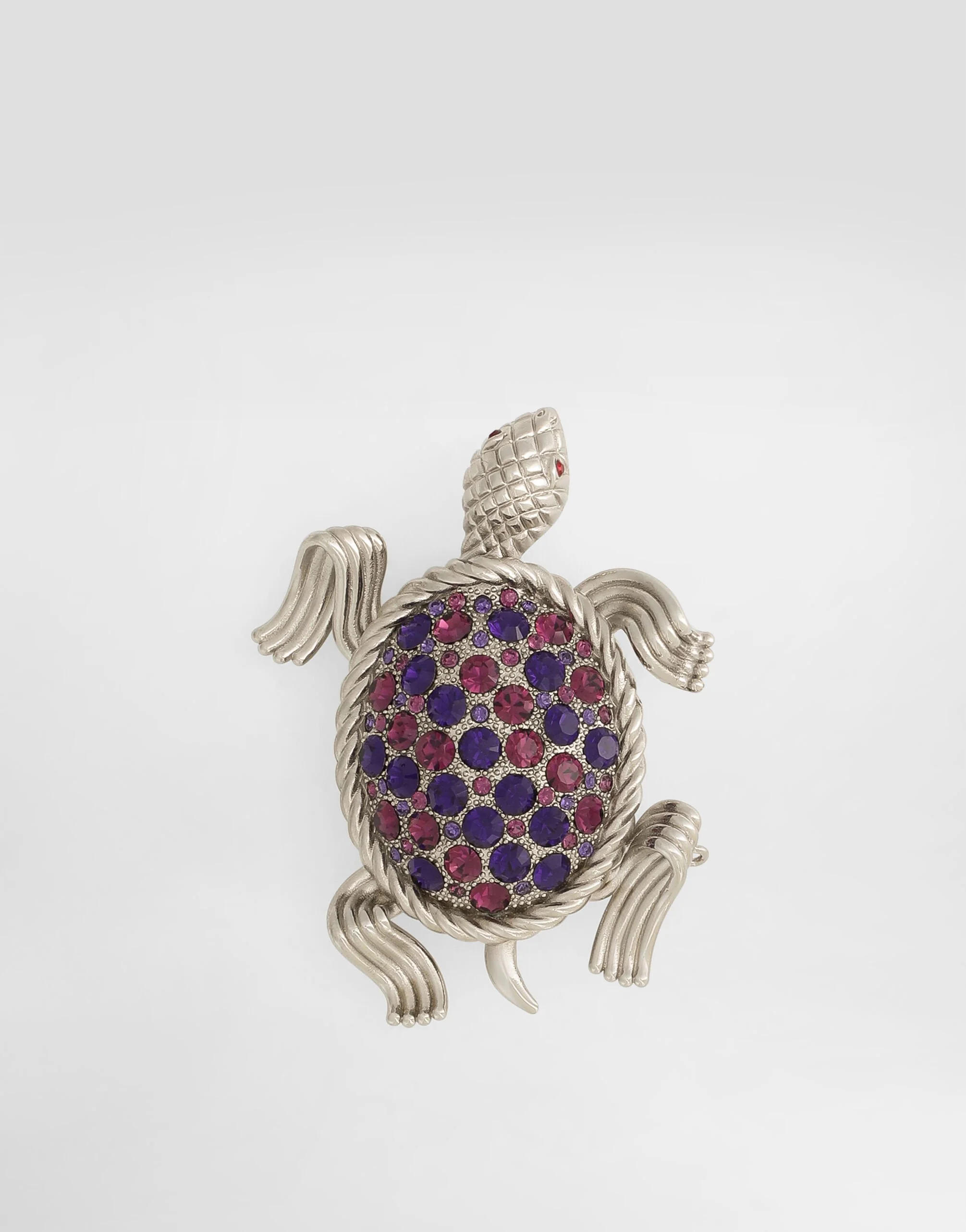 This turtle brooch is a refined accessory that adds a touch of elegance to any outfit. Made with high quality materials, it represents a symbol of style. Sartoria turtle-shaped brooch: • Silver • Made in Italy External Composition: 80% Brass, 20% Glass