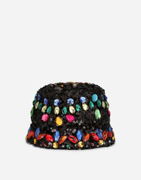 A new collection of accessories in solid-color and printed cottons and silk. The new DG logo in metal or embroidery will make your look even more special. Sequined bucket hat with multi-colored synthetic crystal embellishment: • Top-stitched brim • Lined • Sizes available: 57/58/59/60 • Made in Italy Care And Details External composition: 94% Polyamide 6% Spandex Internal composition: 100% Polyester