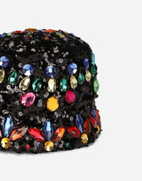 Sequined bucket hat with crystals