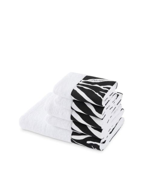 set of five terry cotton towels cloud white cotton terry-cloth effect leopard print trim set of five 2 guest towels 40cm x 60cm 2 hand towels 60cm x 110cm 1 bath towel 100cm x 150cm Made in Italy Composition Cotton 100%