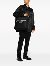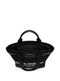 Shopping logo-print tote bag Highlights - Black - Logo print to the front - Two top handles - Two long top handles - Top zip fastening - Main compartment - Internal logo patch - Internal zip-fastening pocket Made in Italy Composition Outer: Polyamide 50%, Acrylic 20%, Calf Leather 15%, Viscose 15% Lining: Polyamide 70%, Acrylic 20%, Calf Leather 10%
