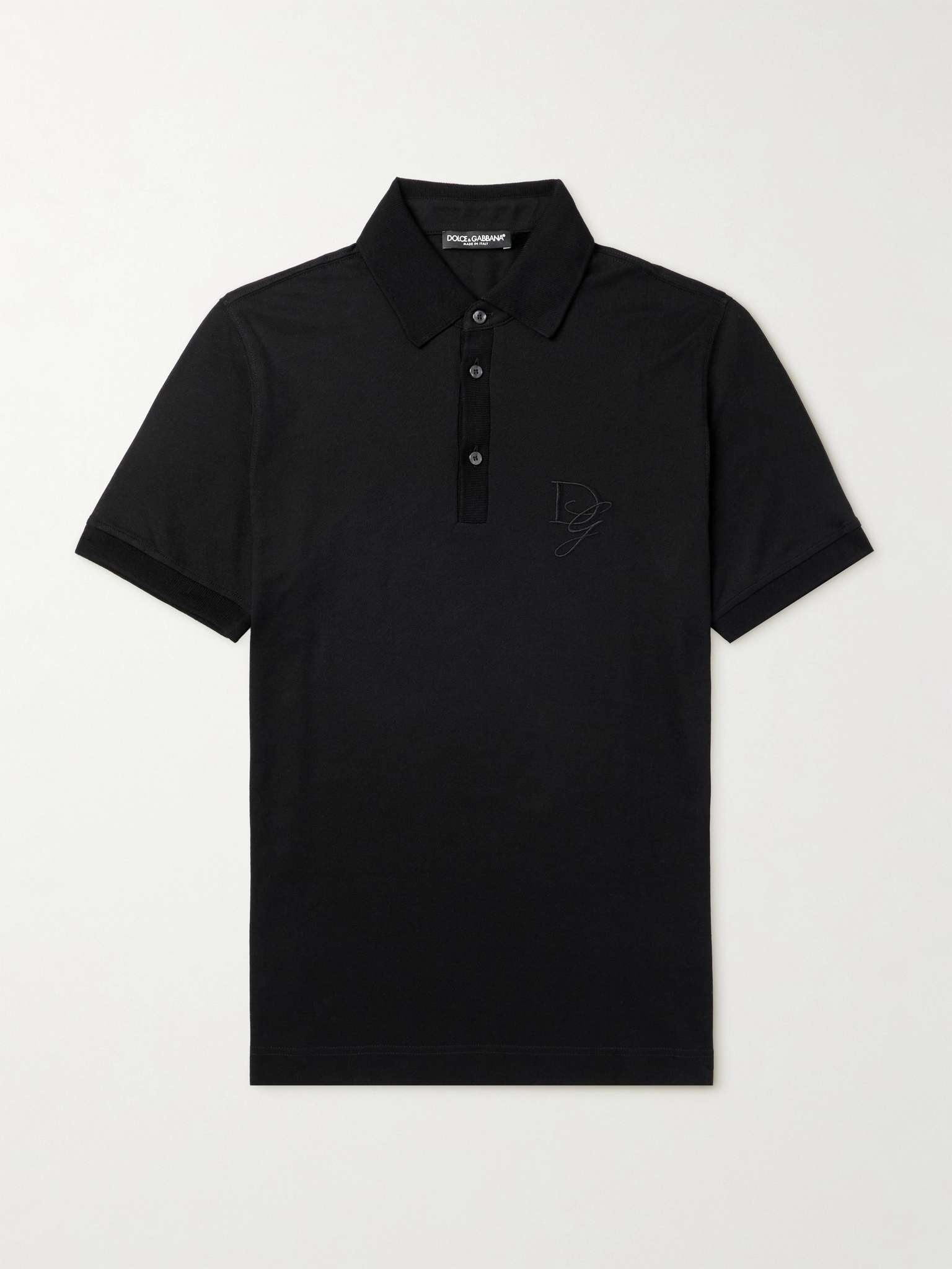 Dolce&Gabbana's preppy polo shirt has been made in Italy from breathable cotton-pique. It's trimmed with twill for textural contrast and embroidered with a scripted monogram at the chest. Size & Fit - Fits true to size. Take your normal size - Designed for a regular fit - Mid-weight, slightly stretchy fabric - Model is shown wearing an IT 48 - Model measures: chest 38"/ 96cm, height 6'0"/ 183cm Details & Care - Black cotton-pique and twill - Button fastenings - 100% cotton - Machine wash