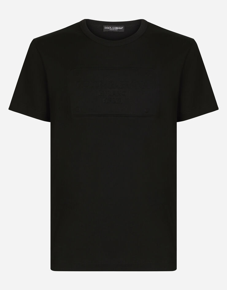 Cotton jersey T-shirt with embossed Dolce&Gabbana logo. • Regular fit • Round neck • Short sleeves • The piece measures 71.5 cm from the rear collar seam on a size IT 48 • The model is 185 cm tall and wears a size IT 48 • Made in Italy Care And Details External composition: 100% Cotton