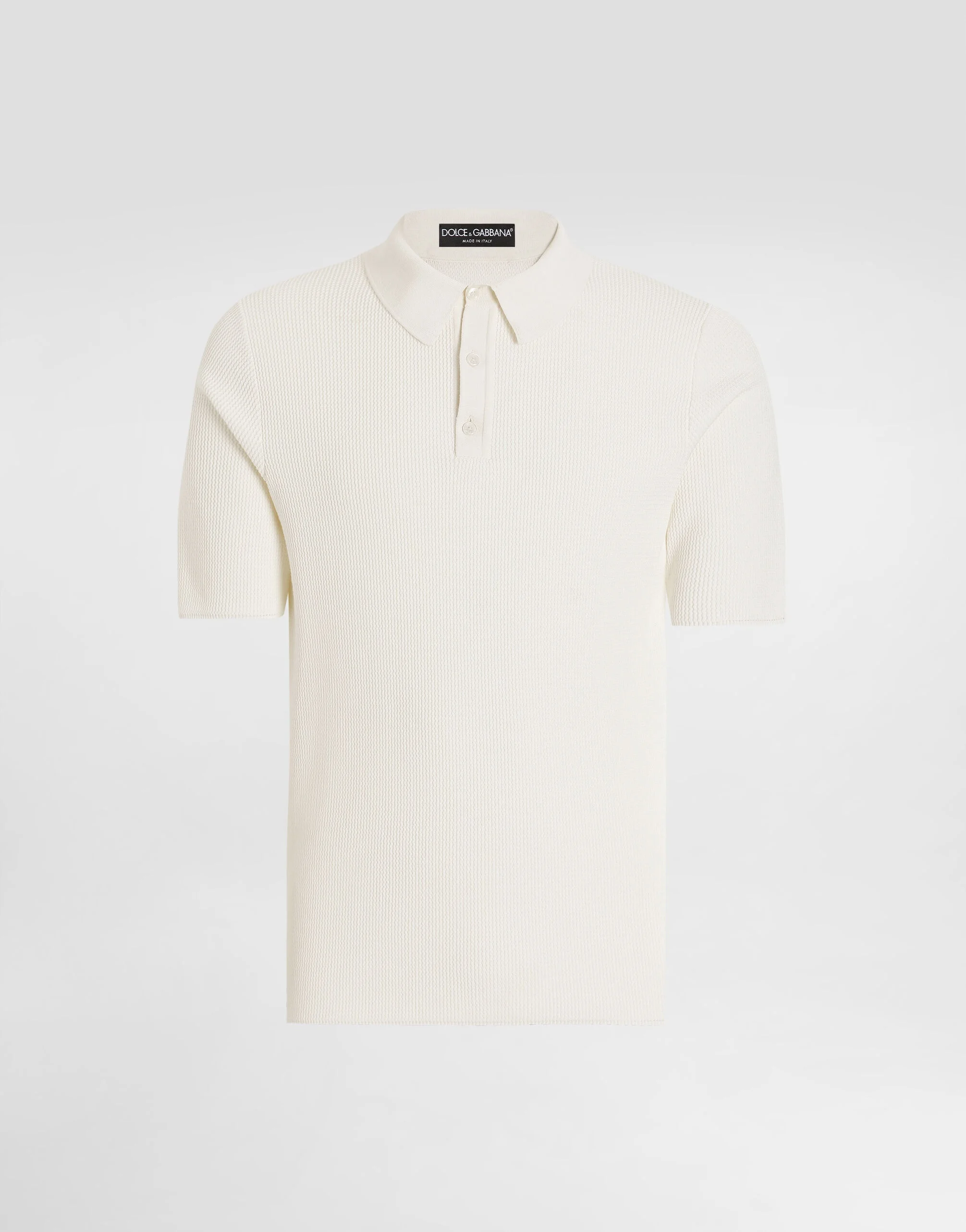 Italy and its beauty are reflected in the Men’s SS25 Collection. Woven raffia and leather give life to jackets, polo-shirts and sweaters to celebrating Italian craftsmanship. The color palette ranges from Nero Sicilia black to burgundy, contributing to conveying a sense of eternal elegance. Refined accessories complement the look: belts and loafers with hand-finished details and oversize bags, such as the Sicily, the Marlene with crocodile-effect print and the versatile Adamo tote. Short-sleeved cotton knit polo-shirt: • White • Slim fit • Short sleeves • Button fastenings • 14-gauge knit • The piece measures 68 cm from the shoulder seam on a size IT 48 • Made in Italy External composition: 100% Cotton