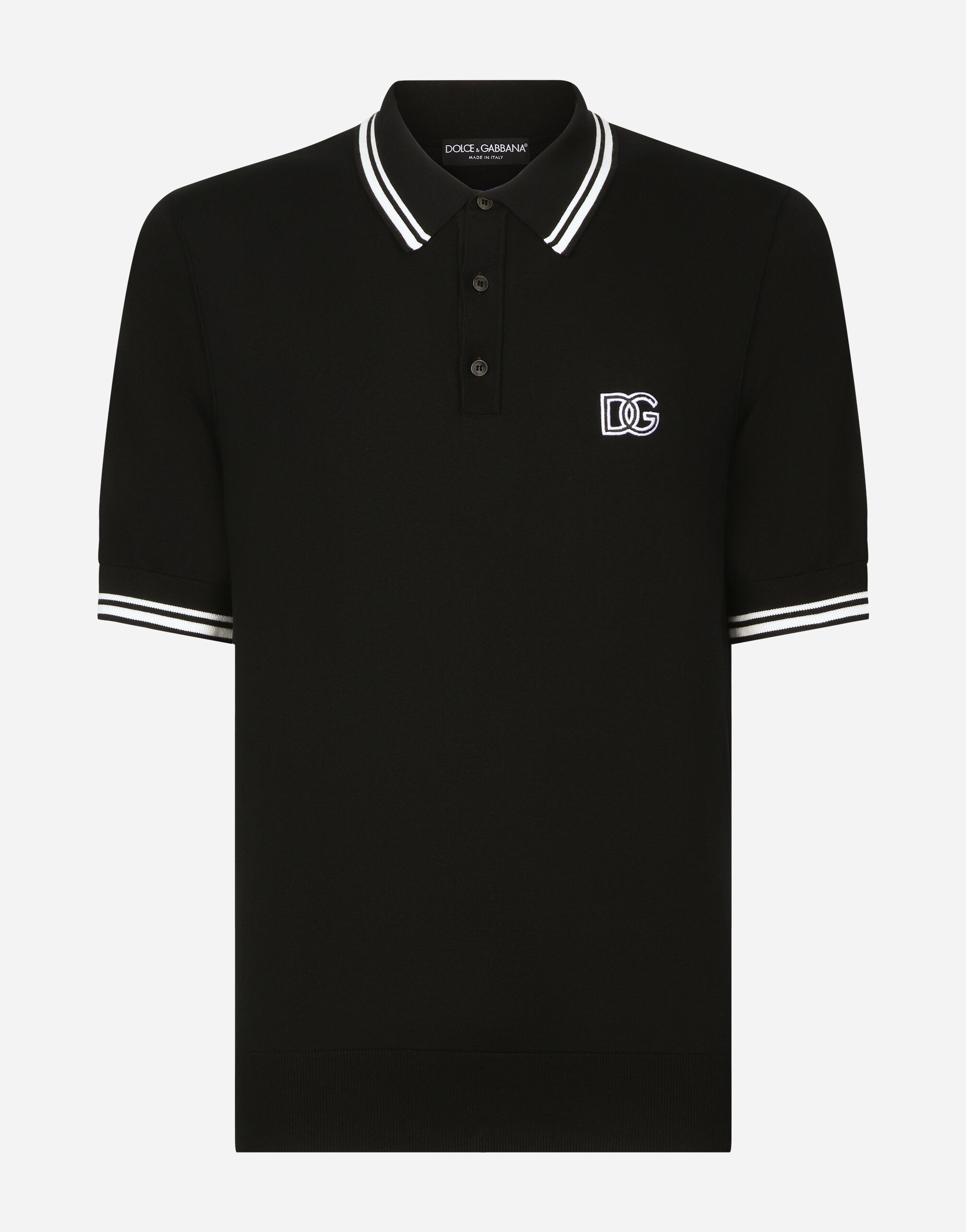 Cotton polo-shirt with DG logo embroidery: • Black • Regular fit • Button fastenings • Short sleeves • Fine-rib trims and neck with contrasting striped detailing • The piece measures 68 cm from the shoulder seam on a size IT 48 • Made in Italy Cotton polo-shirt with DG logo embroidery: • Black • Regular fit • Button fastenings • Short sleeves • Fine-rib trims and neck with contrasting striped detailing • The piece measures 68 cm from the shoulder seam on a size IT 48 • Made in Italy External composition: 99% Cotton 1% Polyamide