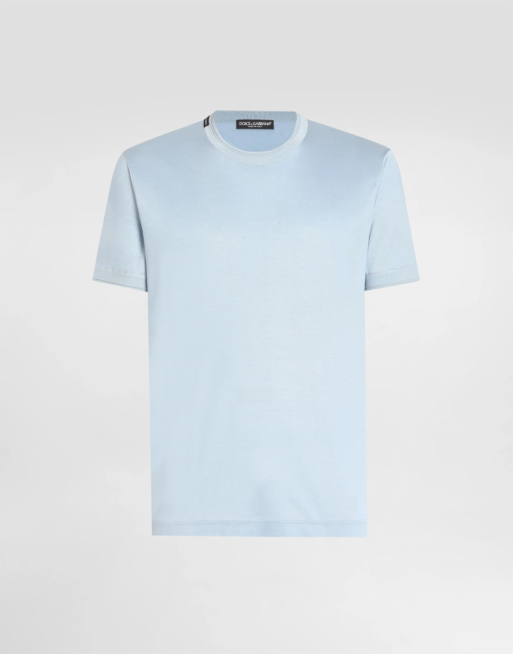 This silk t-shirt is a timeless classic, perfect for any occasion. Its elegance and lightness make it an indispensable garment in every man's wardrobe. Silk t-shirt: • Light blue • Classic fit • Short sleeves • The model is 185 cm tall and wears a size 48 IT • Made in Italy External Composition: 100% Silk