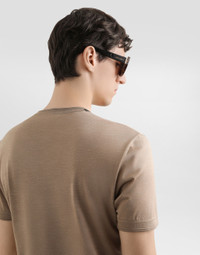 This silk short-sleeved T-shirt is a versatile and refined garment, ideal for adding a touch of elegance to your everyday wardrobe. Silk t-shirt: • Multi-coloured • Classic fit • Short sleeves • The model is 185 cm tall and wears a size 48 IT • Made in Italy External Composition: 100% Silk