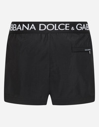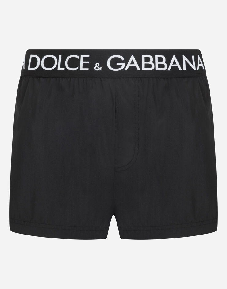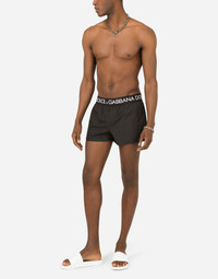 Short swim trunks with branded stretch waistband