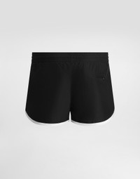 The DNA Men's Collection reimagines daily wear with bold contrasts, meticulous details, and innovative silhouettes. Outerwear stands out with clean lines and high-tech materials, merging sportiness with sophistication in sweaters, sweatshirts, and trousers. A striking color palette, including Black Sicily, caramel, cream, burgundy, and stone gray, pairs with iconic prints like Leopard and Polka dots, enhancing the collection's authentic and refined look. Short solid-color light nylon swim trunks with metal Dolce&Gabbana branded tag: • Black • Stretch waistband and raised faux flap • Side pockets and a small zipped pocket on the back • Inner briefs in soft and comfortable fabric • Matching pouch in the same fabric as the garment with zipper • The item measures 31 cm on the outer leg on a size IT 4 • Made in Italy External composition: 88% Polyamide 12% Spandex Internal composition: 100% Polyester
