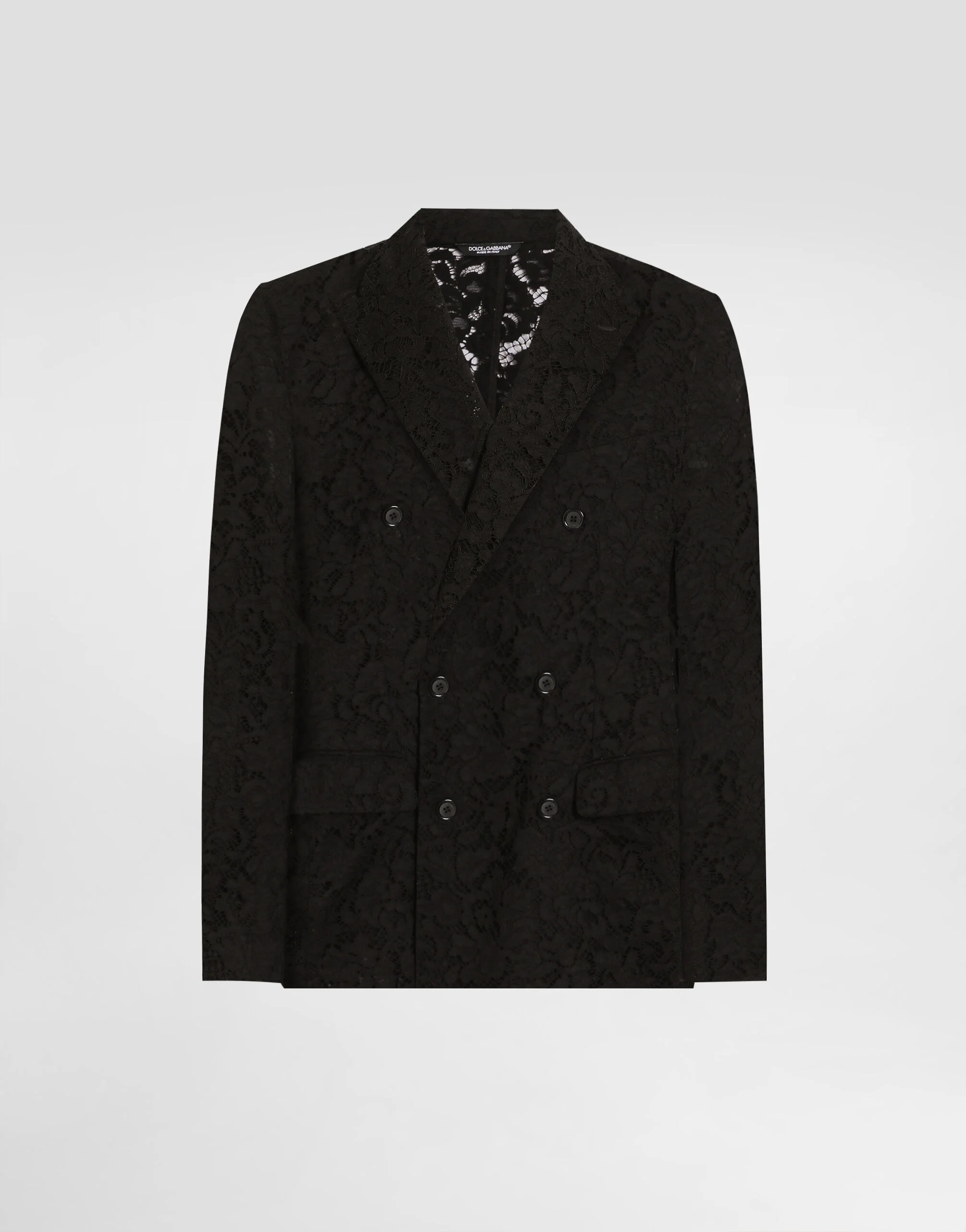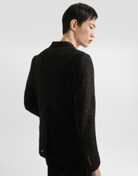 This double-breasted jacket is a fusion of elegance and functionality, perfect for the modern man looking for a distinctive and refined style. The detachable fur collar and cordonetto lace knit add a touch of sophistication to the garment, making it ideal for special occasions. Double-breasted jacket in cordonetto lace: • Black • Deconstructed Sicilia shape • Double-breast with five buttons • Unlined • The model is 185 cm tall and wears a size 48 IT • Made in Italy External Composition: 46% Cotton, 43% Viscose, 11% Polyamide Internal Composition: 59% Polyamide, 41% Silk