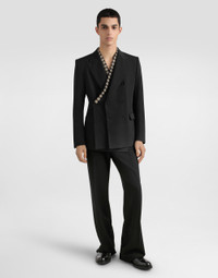 Double-breasted jacket in bistretch wool canvas: • Grey • Sicilia shape • Rounded lapels • With buttons • Lined • The model is 185 cm tall and wears a size 48 IT • Made in Italy External Composition: 97% Virgin Wool, 3% Elastane Internal Composition: 100% Viscose