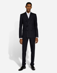 Tailoring means beauty, proportions, skilled cuts and sophisticated details. The FW 24-25 Sartoriale Collection builds on this solid foundation to define new ways of pairing colors, materials and textures. Sicilian rock gray envelops different textures, while Nero Sicilia black adorns textile and velvet weaves and camel pairs with orange. Various types of pinstripes, textured-effect cashmere, double fabrics, suede and denim meet in the looks. Tailored two-piece suit in striped textured wool: • Multi-colored • Slim Sicilia fit • Jacket with peak lapels, flap pockets and breast pocket, inner pockets and central vent • Double-breasted fastening with buttons • Lined • Pants with front slant pockets and rear buttoned welt pockets • The jacket measures 73.5 cm from the back collar seam on a size IT 48 • The pants measure 115 cm on the outer leg and the hem is 17.5 cm wide on a size IT 48 • Made in Italy External composition: 100% Virgin Wool Internal composition: 100% Viscose