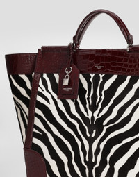 The Sicily handbag is a masterpiece of elegance and craftsmanship, combining fine materials such as Pony and polished Alligator Leather for a sophisticated and distinctive look. Sicily Pony and polished Alligator Leather handbag: • Multi-colored • Leather handle and removable and adjustable leather shoulder strap • Tuck-in closure • Palladium plating • External customization with stamp with film • Internal customization with logo plate • Interior with zip pocket • Item equipped with a logo bag and a pre-assembled box • Measurements: H39.5 x W41.5 x D19.2 cm • Made in Italy External composition: 60% Calfskin with Fur, 40% Alligator Leather Internal composition: 60% Cotton, 20% Alligator Leather, 10% Calfskin, 6% Polyamide, 4% Polyurethane