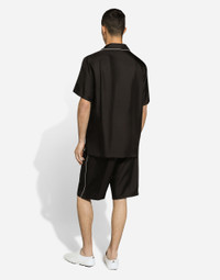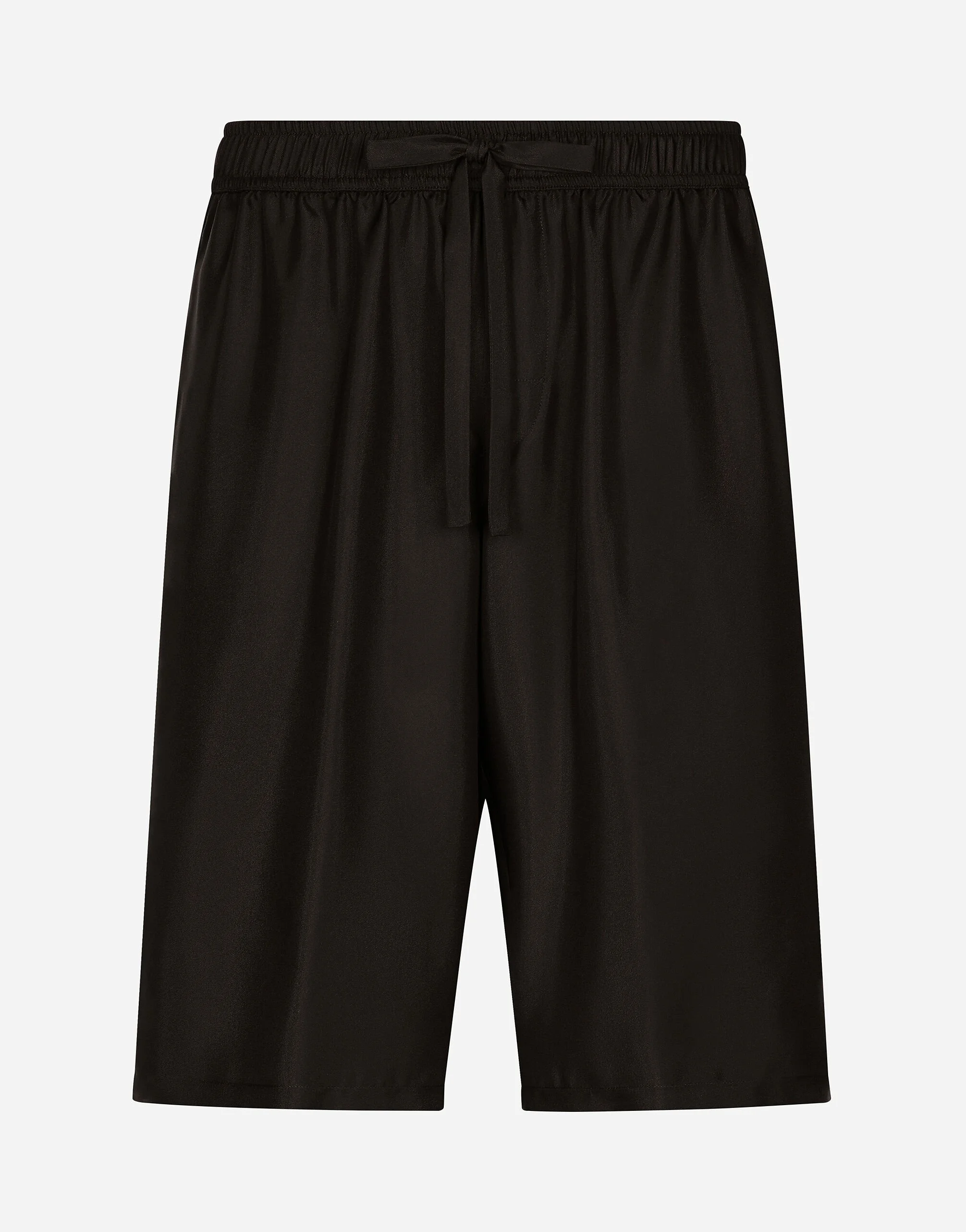 Tailoring means beauty, proportions, skilled cuts and sophisticated details. The FW 24-25 Sartoriale Collection builds on this solid foundation to define new ways of pairing colors, materials and textures. Sicilian rock gray envelops different textures, while Nero Sicilia black adorns textile and velvet weaves and camel pairs with orange. Various types of pinstripes, textured-effect cashmere, double fabrics, suede and denim meet in the looks. Silk twill jogging shorts with back embroidery: • Black • Regular fit • Stretch waistband with drawstring • Front slant pockets and back pocket • The item measures 58 cm on the outer leg and the hem is 32 cm wide on a size IT 48 • Made in Italy External composition: 100% Silk