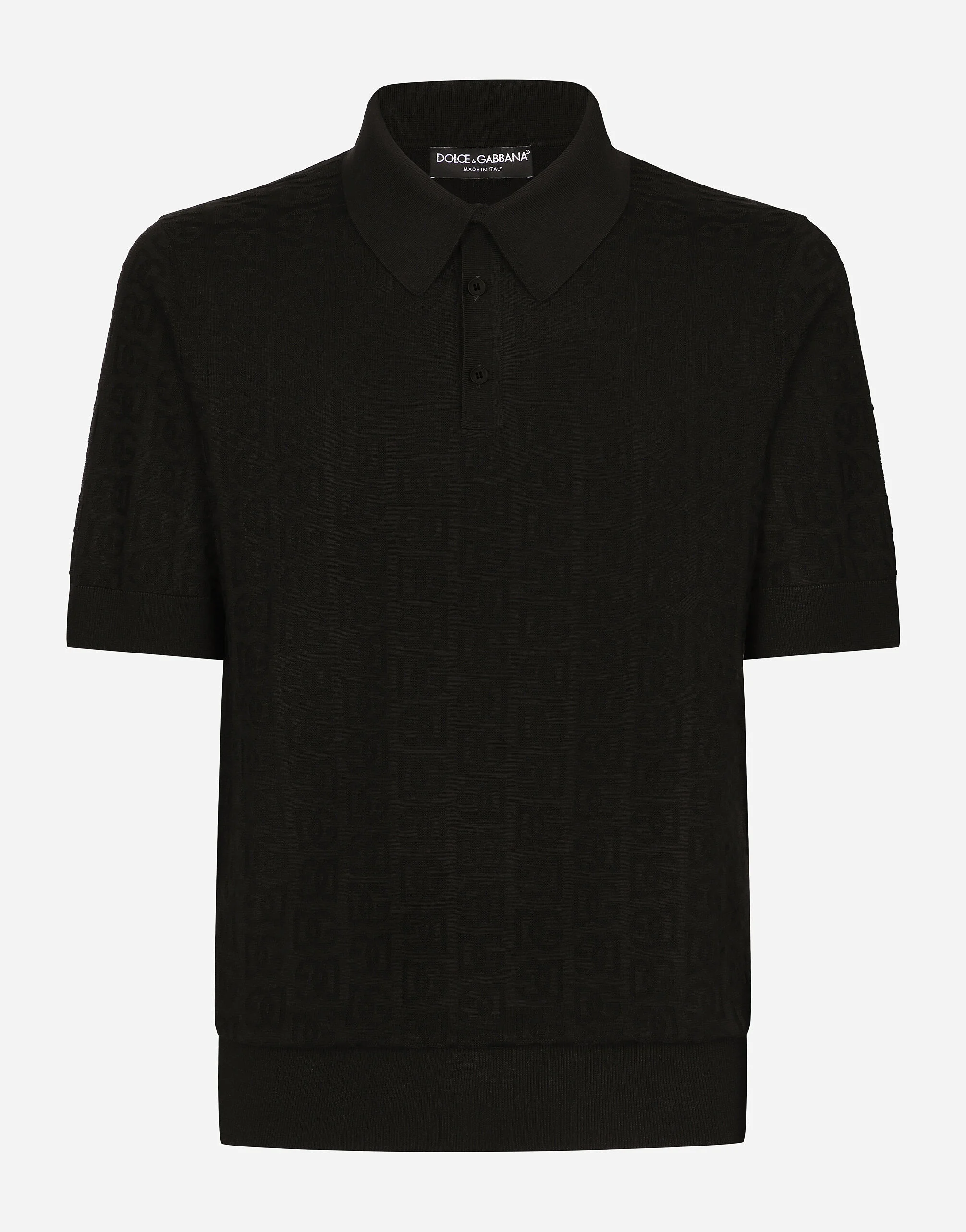 Tailoring means beauty, proportions, skilled cuts and sophisticated details. The FW 24-25 Sartoriale Collection builds on this solid foundation to define new ways of pairing colors, materials and textures.Sicilian rock gray envelops different textures, while Nero Sicilia black adorns textile and velvet weaves and camel pairs with orange. Various types of pinstripes, textured-effect cashmere, double fabrics, suede and denim meet in the looks. Silk jacquard polo-shirt with DG logo: • Black • Regular fit: • Button fastenings • Short sleeves • 18-gauge plain knit• The piece measures 68 cm from the shoulder seam on a size IT 48 • Made in Italy External composition: 100% Silk