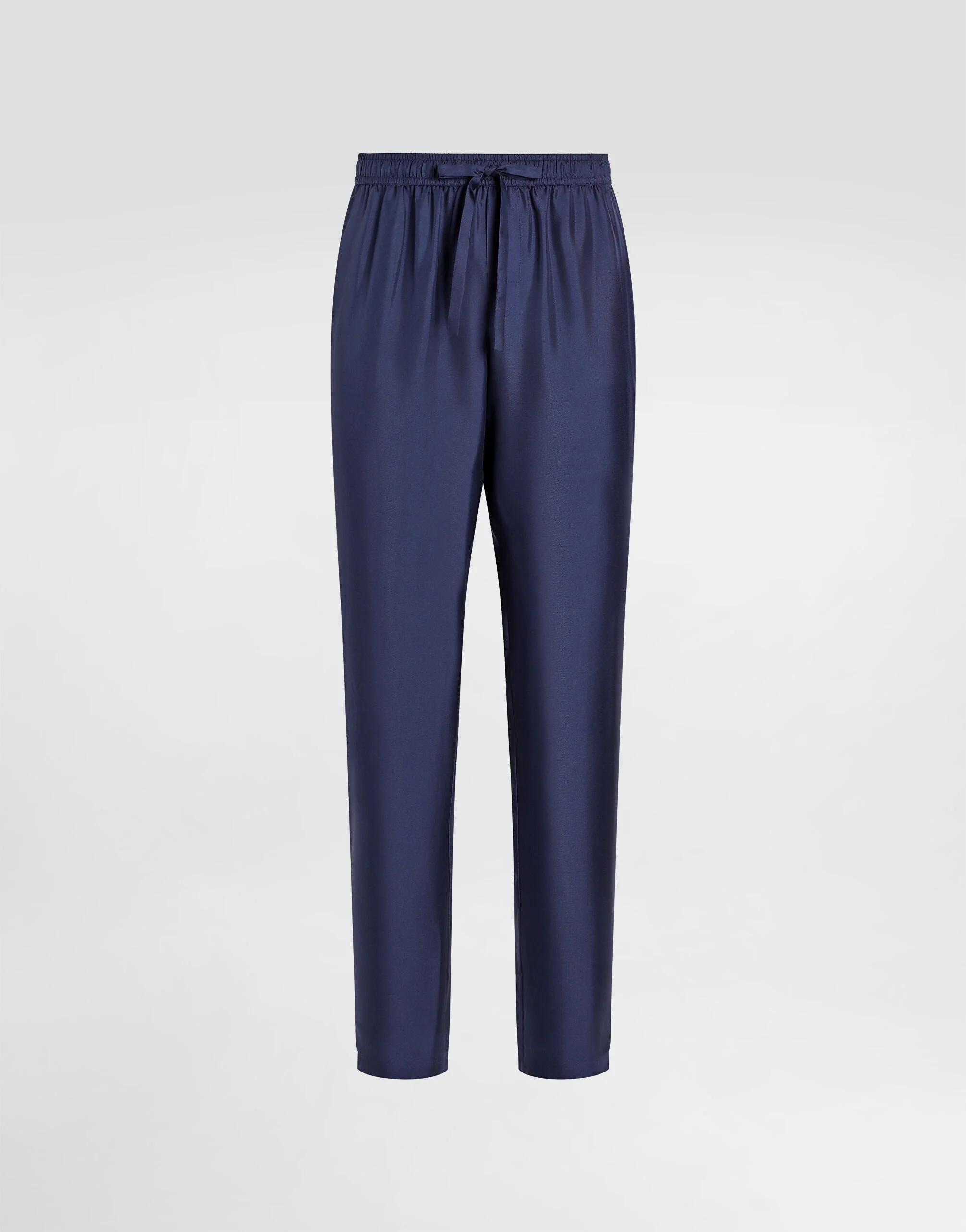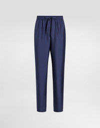 Silk twill jogging pants with DG logo-embroidered patch: • Blue •Regular fit •Stretch waistband with drawstring •Front slant pockets and patch back pocket •Contrasting-color piping •The item measures 110 cm on the outer leg and the hem is 18.5 cm wide on a size IT 48 •The model is 185 cm tall and wears a size IT 48 •Made in Italy Care And Details External composition: 100% Silk