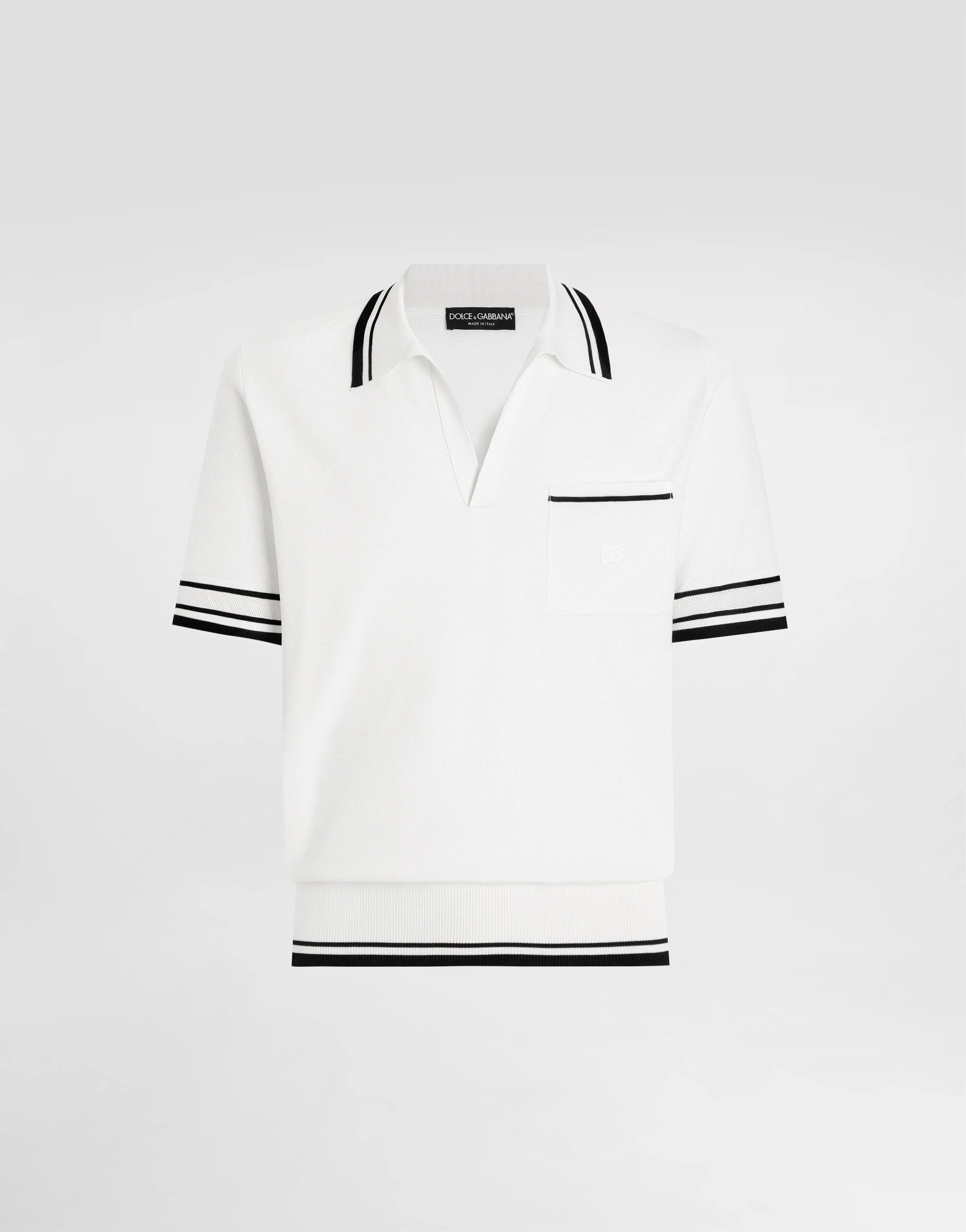 This elegant short-sleeved polo shirt is perfect for a refined and modern look. Ideal for wearing on multiple occasions, it combines comfort and style in a single garment. Silk pique polo shirt: • White • Polo-shirt collar • Short sleeves • The model is 185 cm tall and wears a size 48 IT • Made in Italy External Composition: 97% Silk, 3% Polyamide