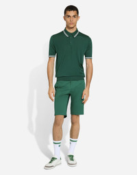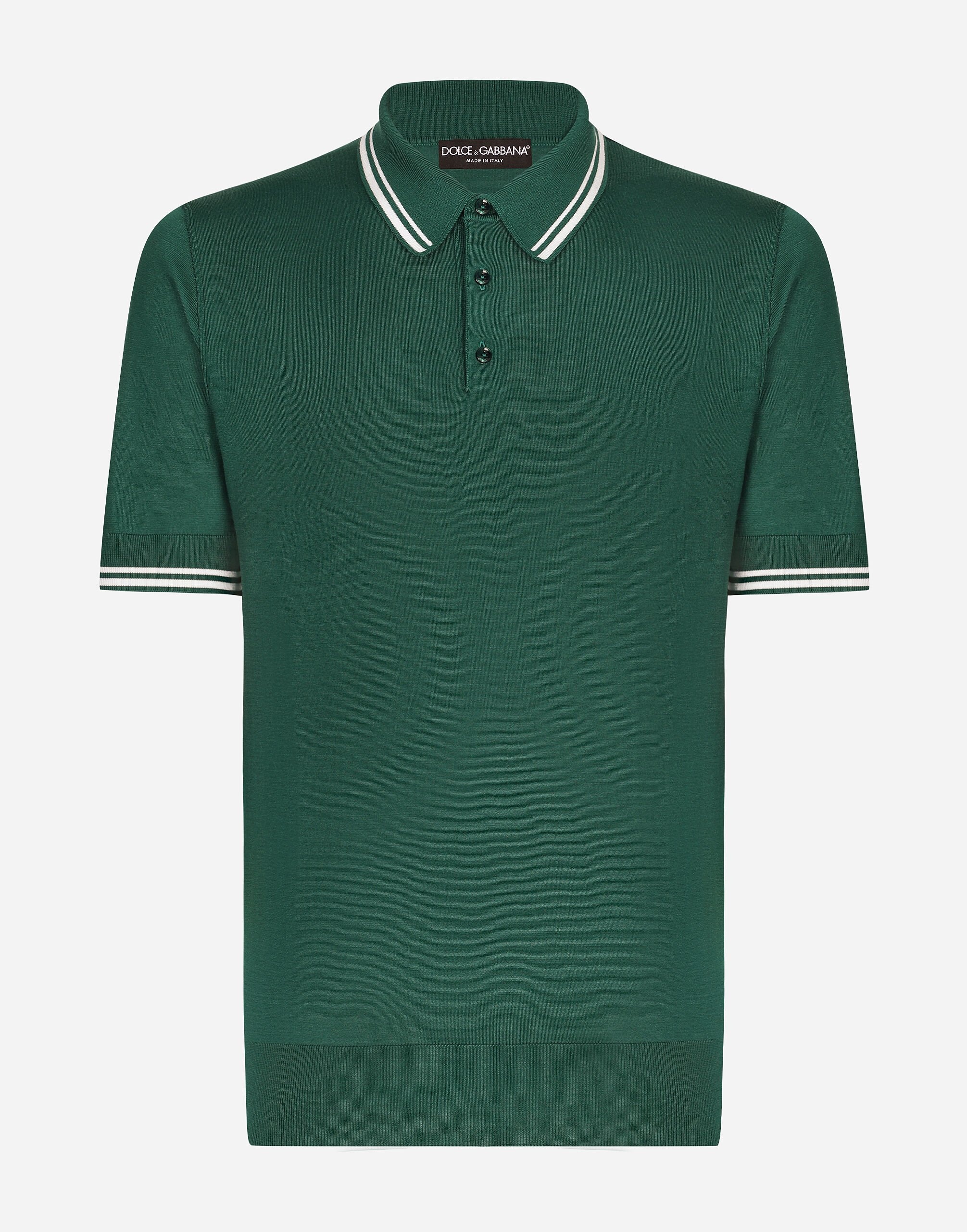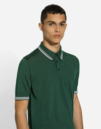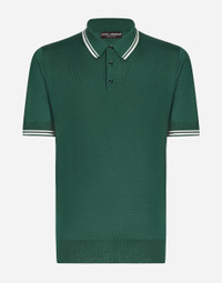 Pictorial, at times volumetric with a textured effect, the decorative “calligraphic-naturalistic” majolica in solid-color green gives life to a collection distinguished by eclectic silhouettes, some stolen from the world of sports, with a cool and light vibe. The vibrant two-tone accenting – green and white – is designed to enhance a series of details, such as the pockets, the green piping paired with the white silk pajamas, the stripes on the polo-shirts, the cuffs on the shirts or the jersey inserts on the T-shirts. Silk polo-shirt: • Green • Regular fit • Button fastenings • Short sleeves • 18-gauge plain knit • The piece measures 68 cm from the shoulder seam on a size IT 48 • Made in Italy External composition: 100% Silk