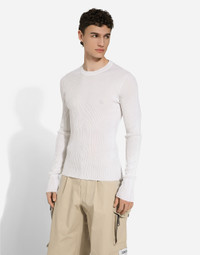 The SS24 “Stile” Collection recounts and clearly presents a strong concept: the unique and unmistakable style of Dolce&Gabbana. A word that is more than a statement. It is a concept! The designers work with surfaces, textures, layers and color nuances, as well as the sheen and fineness of the materials themselves, creating a “Stylish” collection. We’re going back to our roots with the desire to reaffirm the “Stile” - style -, flair and iconic DNA of the brand. Silk round-neck sweater: • White • Slim fit • Long sleeves • Double-stranded, 18-gauge knit • The piece measures 68 cm from the shoulder seam on a size IT 48 • Made in Italy External composition: 100% Silk