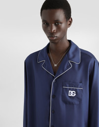 Silk twill shirt with DG logo-embroidered patch: • Blue •Loose fit •Shirt-style collar •Button fastenings • Long sleeves •Patch breast pocket •Contrasting-color piping •The piece measures 78 cm from the rear collar seam on a size IT 40 •The model is 185 cm tall and wears a size IT 40 •Made in Italy Care And Details External composition: 100% Silk