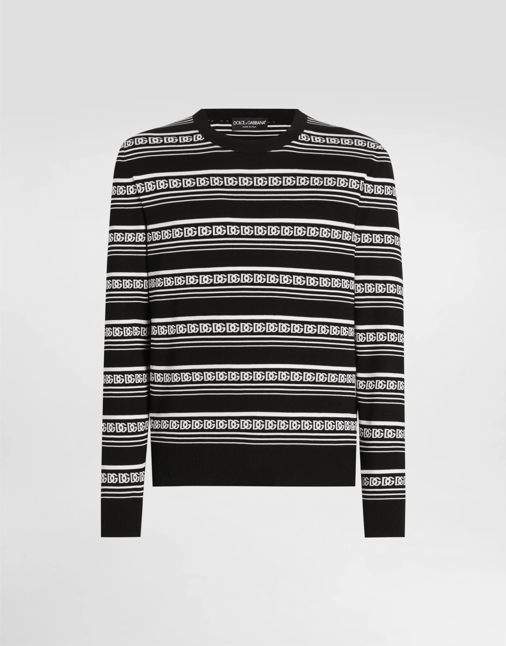 This long-sleeved crewneck pullover is perfect for a sophisticated and modern look. Crafted from silk, it features a logoed striped design that adds a touch of elegance to your wardrobe. Silk crewneck pullover with logo: • Multi-coloured • Crew neck • Long sleeves • The model is 185 cm tall and wears a size 48 IT • Made in Italy External Composition: 100% Silk