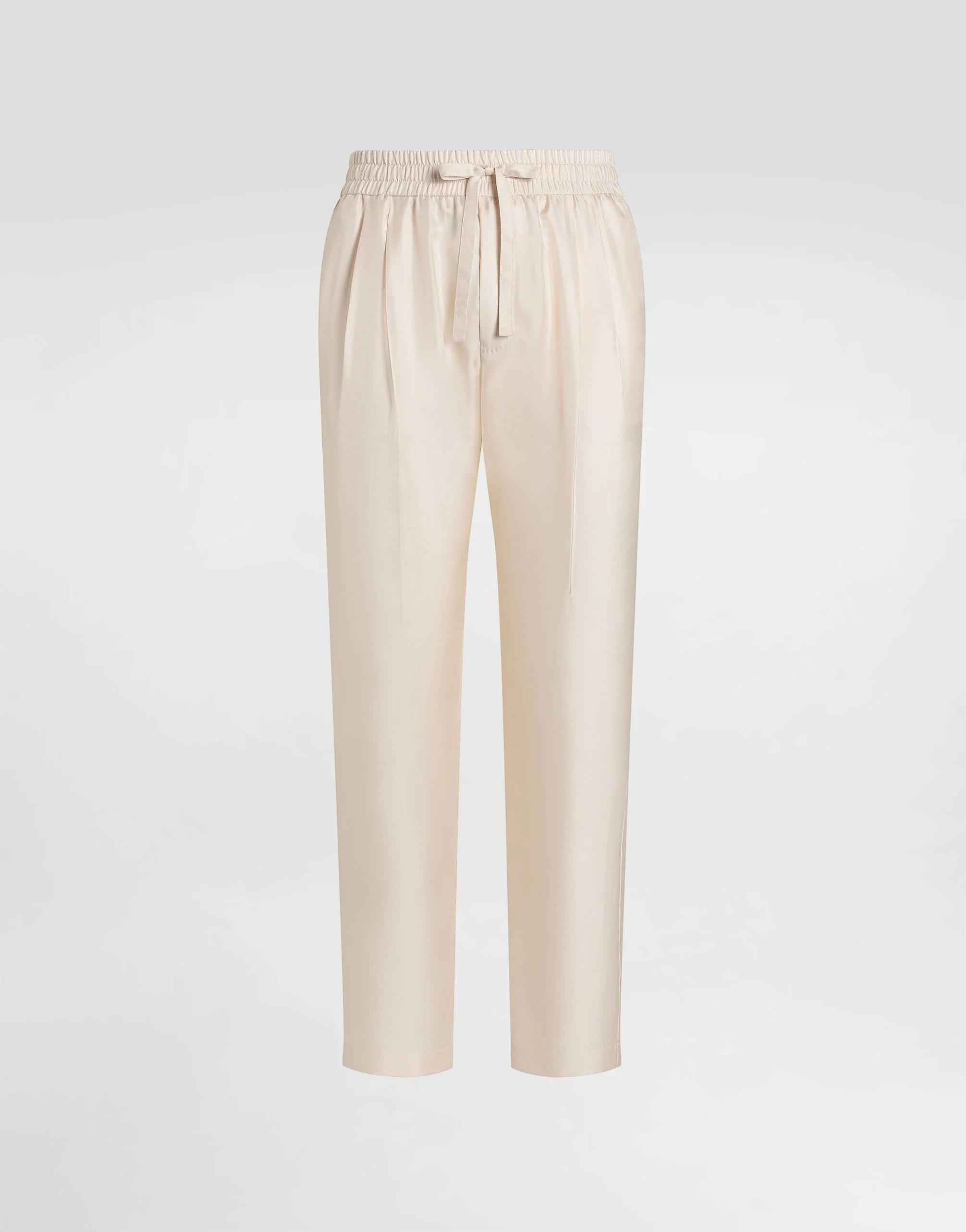 These classic jogging pants are perfect for those looking for a casual yet refined look. Made of silk twill, it offers uncompromising comfort and style. Silk twill jogging trousers: • Beige • The model is 185 cm tall and wears a size 48 IT • Made in Italy External Composition: 100% Silk