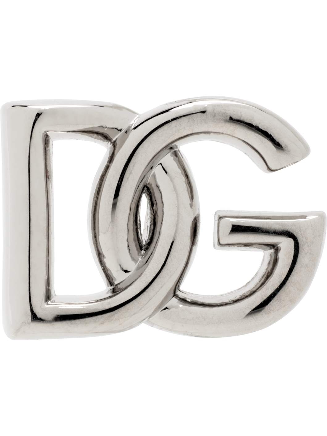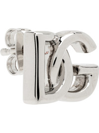 Single stud earring in silver-tone brass. - Logo at face - Post-stud fastening - H0.5 x W0.5 Supplier color: Silver