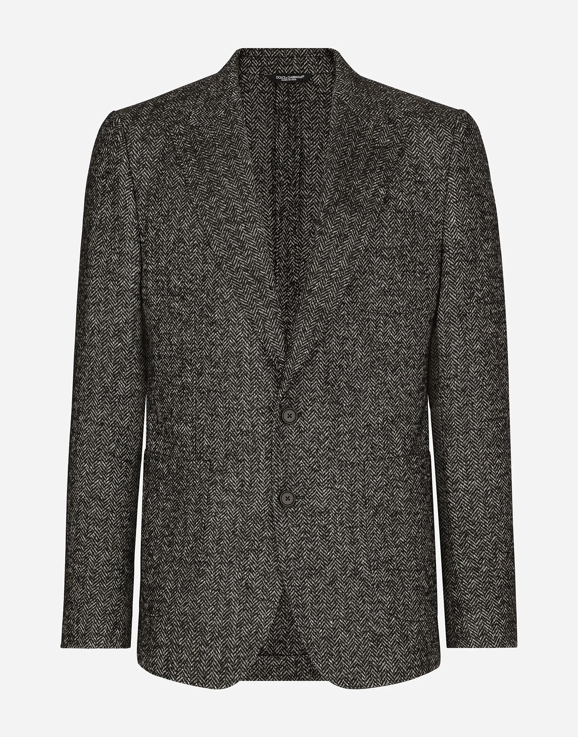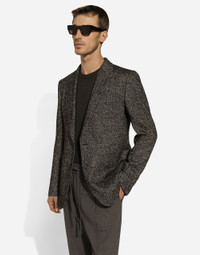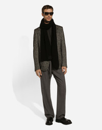 Tailoring means beauty, proportions, skilled cuts and sophisticated details. The FW 24-25 Sartoriale Collection builds on this solid foundation to define new ways of pairing colors, materials and textures. Sicilian rock gray envelops different textures, while Nero Sicilia black adorns textile and velvet weaves and camel pairs with orange. Various types of pinstripes, textured-effect cashmere, double fabrics, suede and denim meet in the looks. Tailored single-breasted wool jacket: • Gray • Regular Portofino fit • Peak lapels • Double-button fastening on the front • Outer patch pockets and welt pockets on the interior • Buttoned cuffs • Central vent • Unlined • The piece measures 73.5 cm from the rear collar seam on a size IT 48 • Made in Italy External composition: 68% Wool 25% Alpaca 6% Polyamide 1% Spandex Internal composition: 100% Viscose